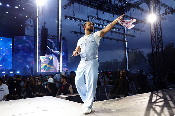 This year, Drake became the first artist to headline all three nights of Wireless Festival. The opening night showcased his R&B roots, as the Canadian star curated a nostalgic, soulful setlist featuring special guests. The Finsbury Park crowd was treated to performances from Bobby Valentino, who performed his hit “Slow Down,” Mario with “Let Me Love You,” Bryson Tiller delivering “Exchange,” and Giveon with soulful renditions of “Chicago Freestyle” and “Heartbreak Anniversary.”